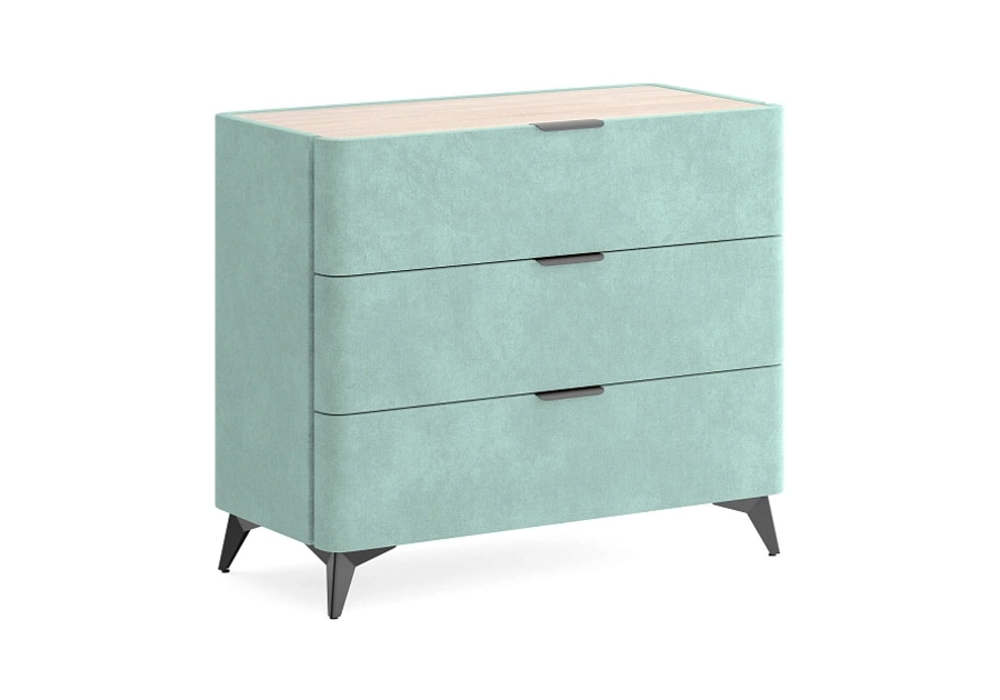 Sheldon - комод, который выделяется не за счёт громкой формы, а за счёт точных деталей. Мягкий корпус в сочетании со столешницей из ЛДСП "Дуб Сонома", изящные металлические ручки и высокие чёрные ножки - всё это работает вместе, создавая образ дорогой мебели. Три ящика на скрытых направляющих с доводчиками закрываются без хлопка и не выпадают при случайном толчке.
